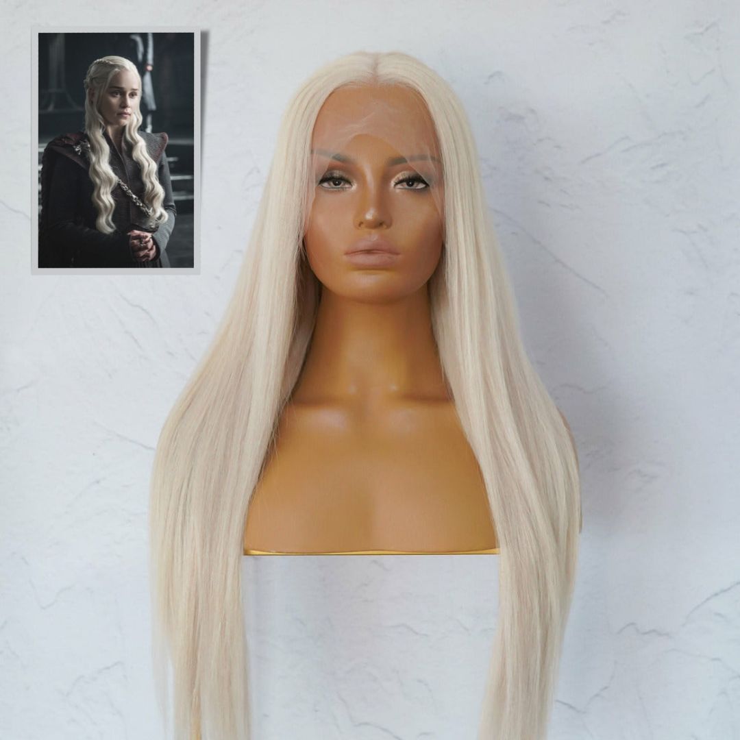 KHALEESII COSPLAY - CLEO Platinum White Blonde Human Hair Lace Front Wig