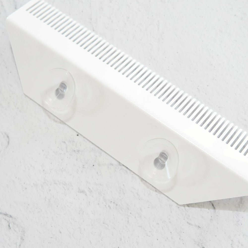 A waterproof styling holder made from strong white acrylic with a gold MH logo. Simply suction onto your mirror, shower wall, or window to hold your extensions securely in place.